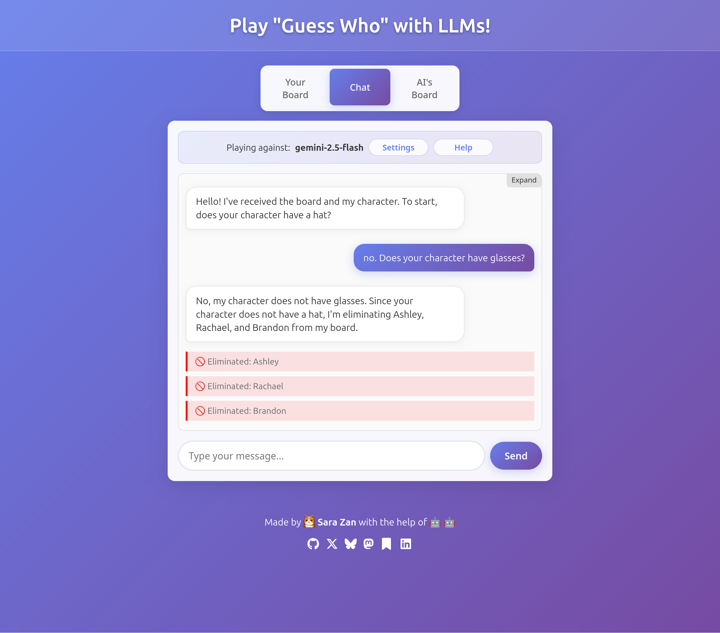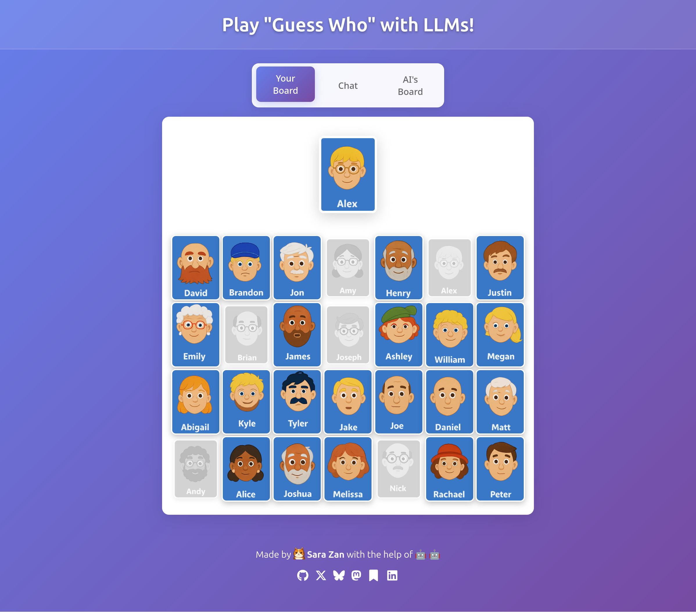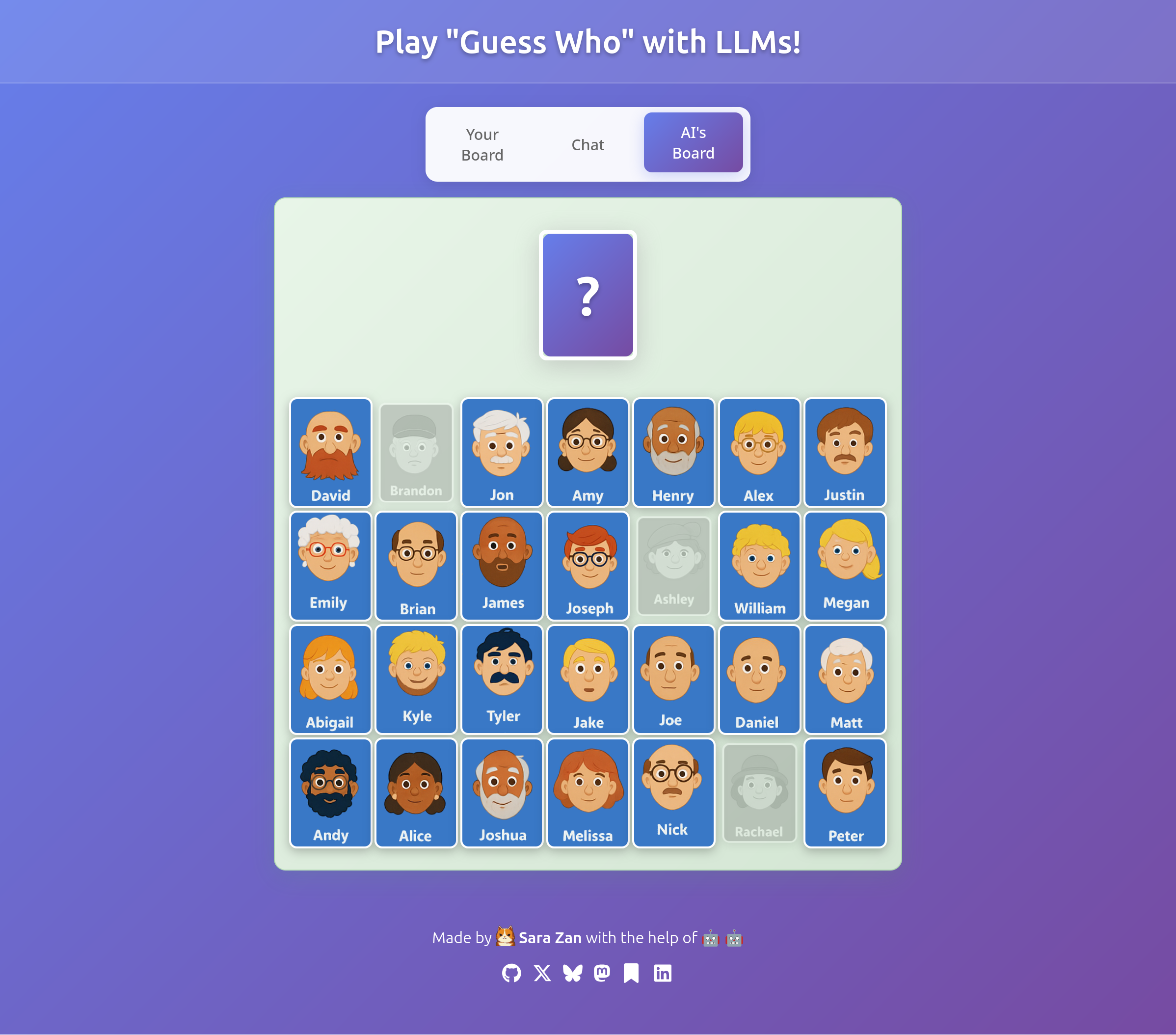 You can also see the LLM's board to know how many characters it already filtered out and how close it is to winning.