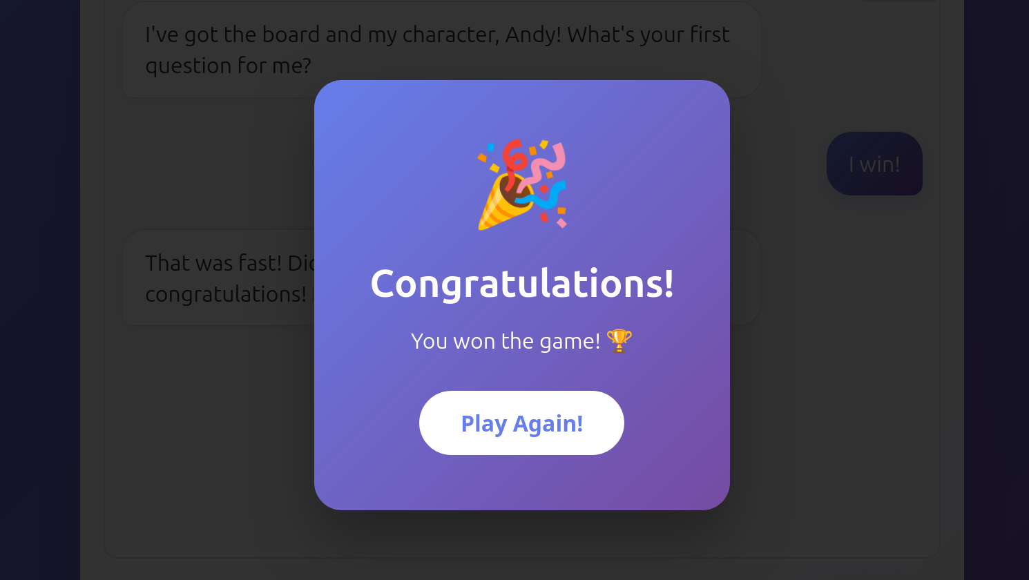 The LLM is in charge of declaring a winner. When you win, the LLM should declare you the winner: