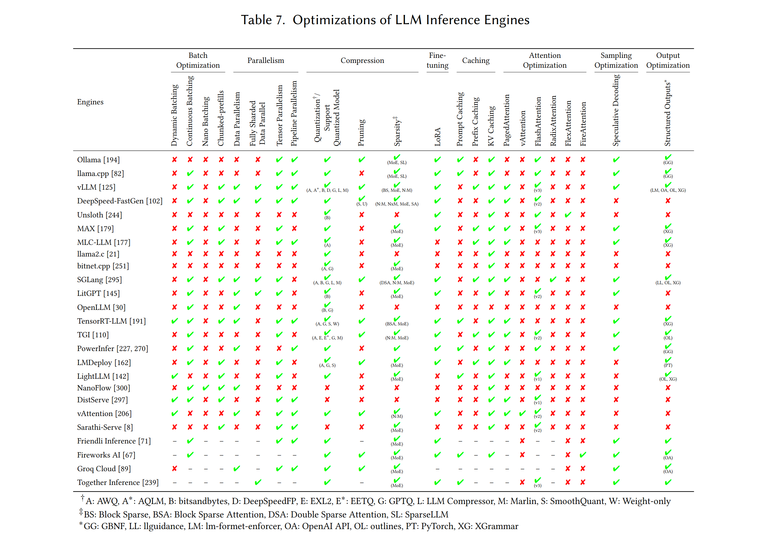 A feature comparison across inference engines from this May 2025 review.