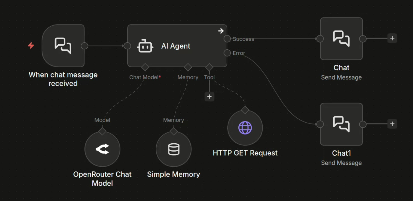 The demo agent is implemented in n8n as a low-code workflow and it's intentionally very simple: