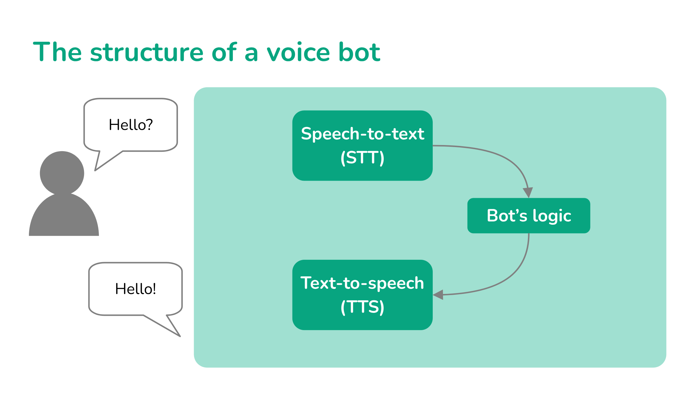 In this post we're going to focus mostly on the challenges: we'll discuss the basic structure of most voice bots today, their shortcomings and the main issues that you may face on your journey to improve the quality of the conversation.
